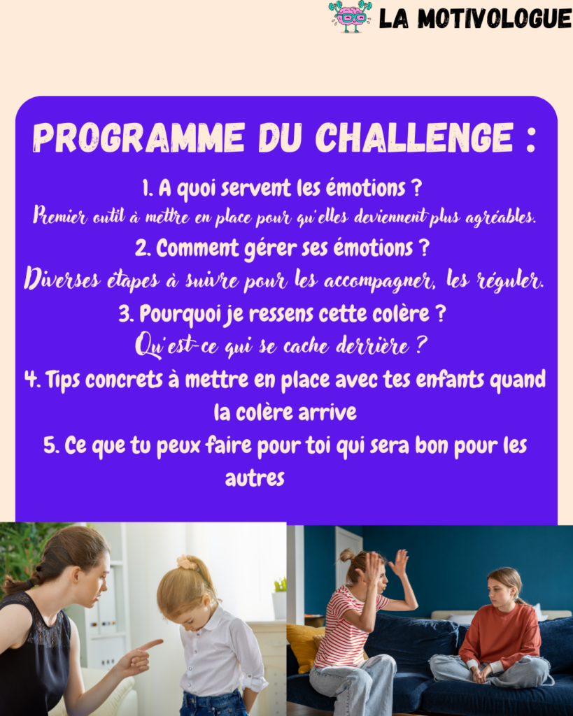 Si tes enfants te saoulent et te mettent en colère, que tu es obligée de lever le ton et que tu en as plus qu’assez, ce challenge tombe à point nommé. Si tu veux que ça change, c’est le moment, c’est l’occasion, pour recevoir l’écoute, le soutien, les conseils que tu mérites au quotidien. Tu parviendras à remettre en question, à t’ouvrir à de nouveaux fonctionnements. Fonce, c’est complètement gratuit. Un bon coup de pouce.