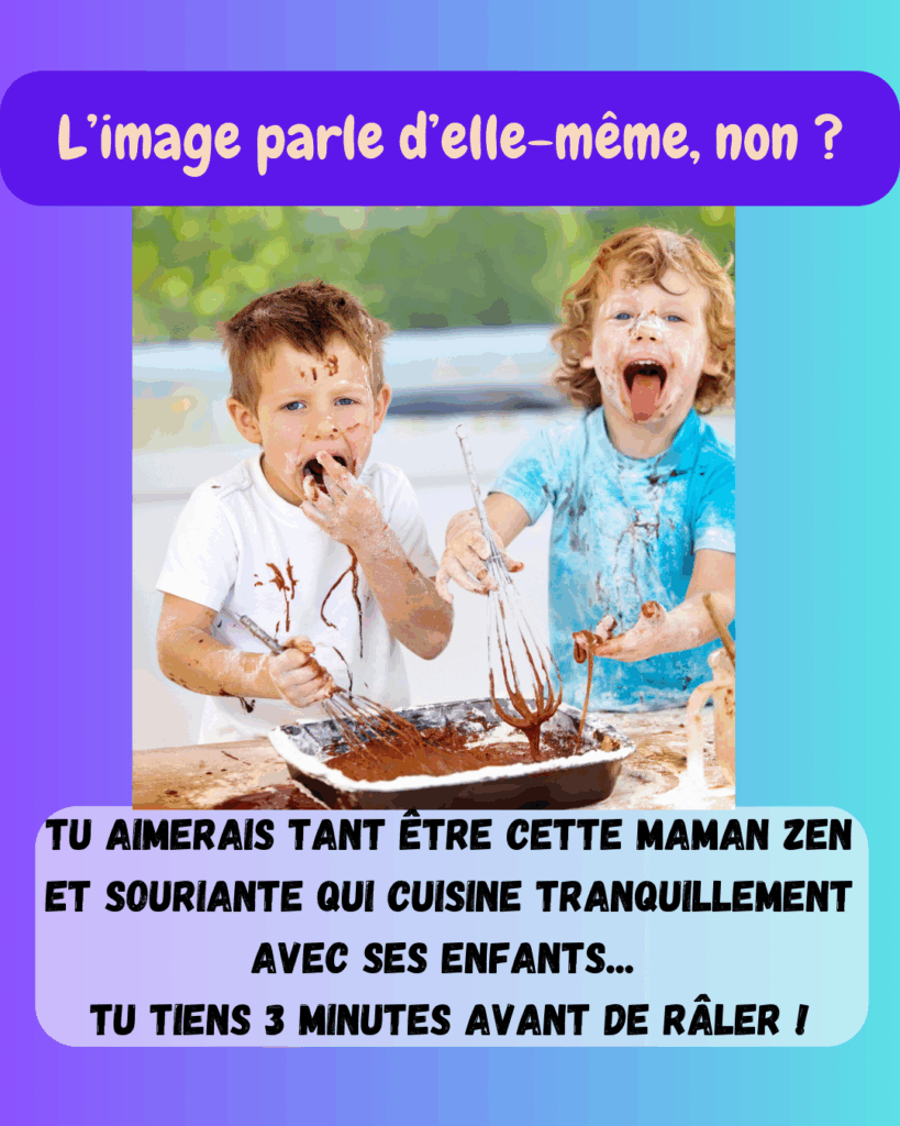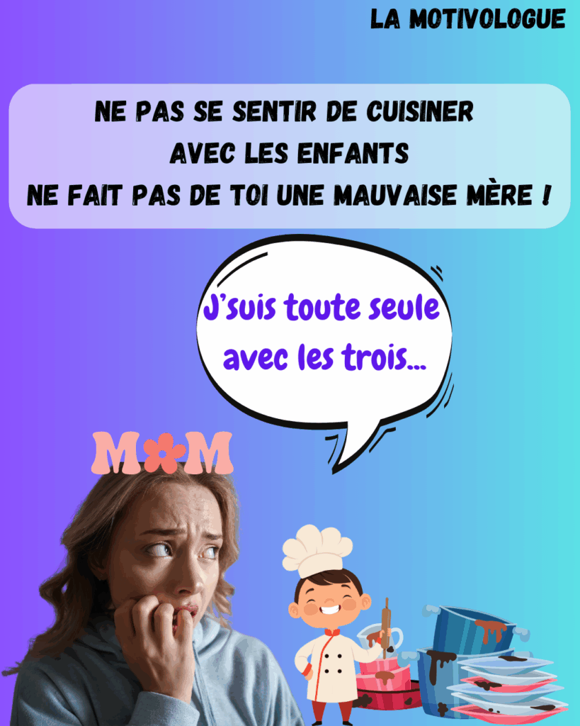 Tu aimerais tant être cette maman zen et souriante qui cuisine tranquillement avec ses enfants…
